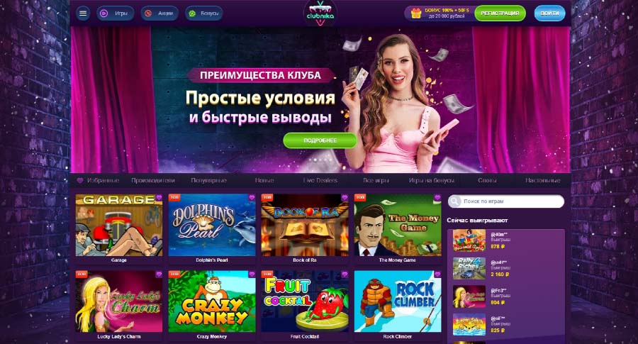 Поклонникам тематики 18+ определенно зайдет оформление главной страницы виртуального игорного клуба Клубника. На официальном сайте вы увидите яркие баннеры в виде фотографий привлекательных девушек в нижнем белье, которые будут мотивировать вас на победу. Интерфейс онлайн казино 2026 отличается простотой и легкостью, поэтому каждый желающий без труда разберется в управлении клубом.