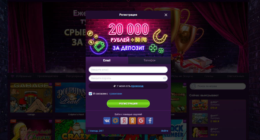 Если вы хотите играть на реальные денежные средства в этом клубе, вам необходимо пополнить игровой баланс минимум на 100 рублей.