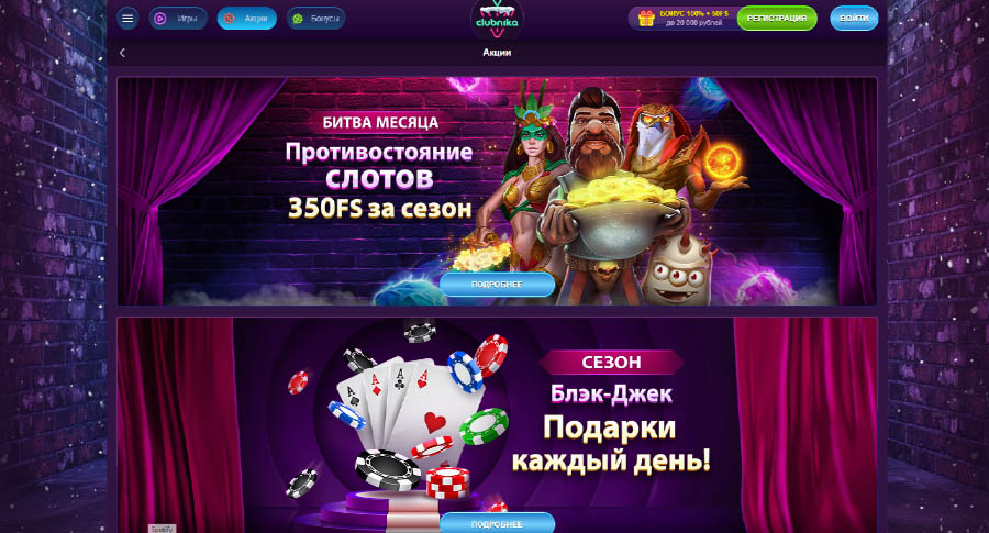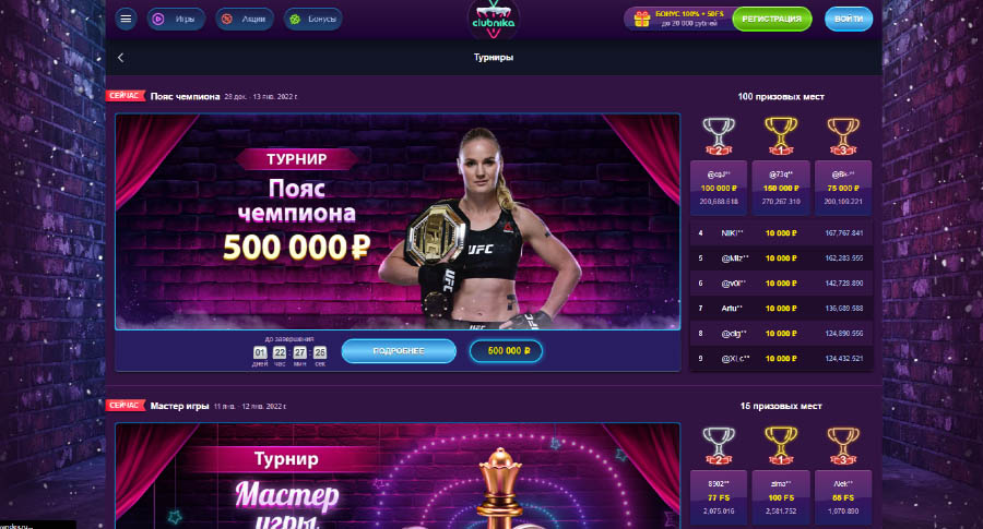 Зарегистрированные игроки виртуального казино Clubnika могут участвовать в программе лояльности, повышая тема самым свой игровой статус и получая за это дополнительные привилегии. Например, кэшбек, фриспины, денежные призы и другие предложения. Всего доступно 9 рангов, а именно: