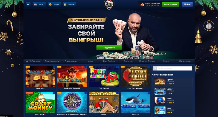Реальный драйв и заряд адреналина ждет посетителей официального сайта Лев казино с выводом денег. В его каталогах собраны увлекательные азартные игры, обеспечивающие высокий уровень отдач и отличные перспективы для выигрышей. В этом проверенном онлайн клубе могут комфортно играть на деньги гости из разных стран, в том числе и России.