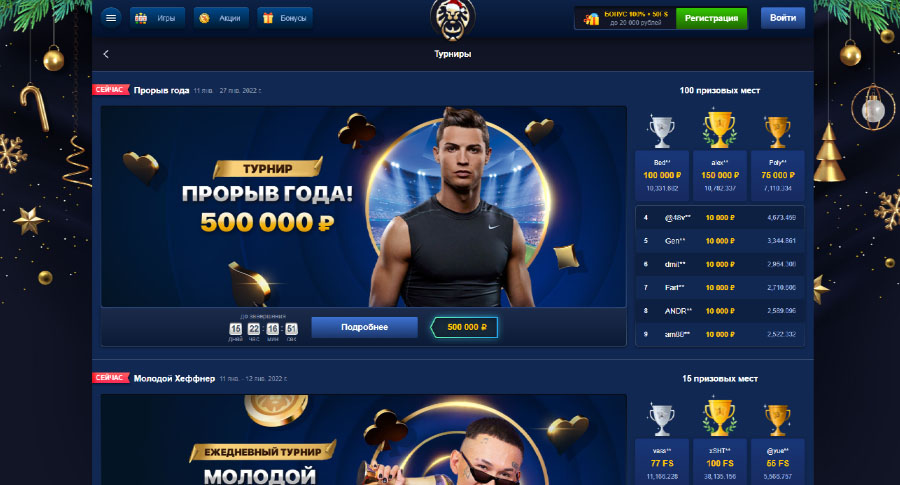 После можно играть на деньги или в демо-режиме, выбирая понравившиеся азартные игры в каталогах Лев казино. Пожелавшим скачать приложение администрация клуба предлагает привлекательные бонусные подарки в виде фриспинов для игры на популярных слотах.